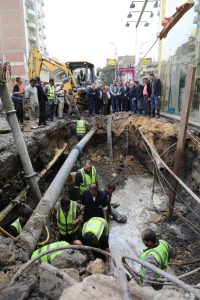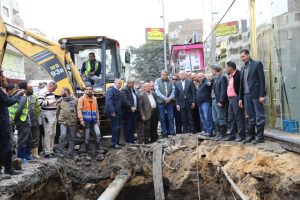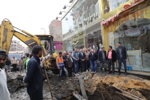 أشرف د. إبراهيم صابر، محافظ القاهرة، على أعمال إصلاح كسر ماسورة مياه بقطر 900 مم في شارع الترعة البولاقية بحي شبرا.